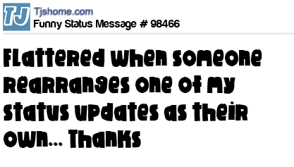 X is Flattered when someone rearranges one of my status updates as their own... Thanks