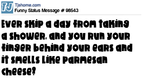 X Ever skip a day from taking a shower, and you run your finger behind your ears and it smells like parmesan cheese?