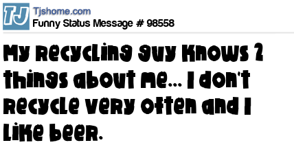 X is My recycling guy knows 2 things about me... I don't recycle very often and I like beer.