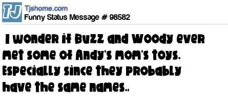 - # 48758 I wonder if Buzz and Woody ever met any of Andy's mom's toys... especially since they probably have the same names...