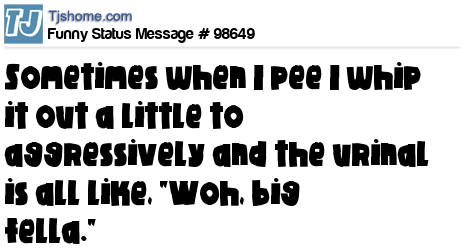 X Sometimes when I pee I whip it out a little to aggressively and the urinal is all like, "Woh, big fella."