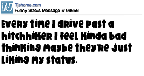 X Every time I drive past a hitchhiker I feel kinda bad thinking maybe they're just liking my status.