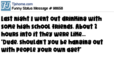 X Last night I went out drinking with some high school friends. About 2 hours into it they were like... "Dude, shouldn't you be hanging out with people your own age?"