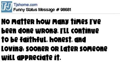 X is No matter how many times I've been done wrong, I'll continue to be faithful, honest, and loving; sooner or later someone will appreciate it.