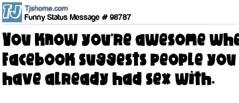 X is You know you're awesome when Facebook suggests people you have already had sex with.