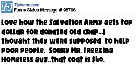 X is Love how the Salvation Army gets top dollar for donated old crap...I thought they were supposed to help poor people. Sorry Mr. Freezing Homeless guy..that coat is $40.