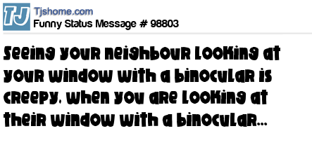 X seeing your neighbour looking at your window with a binocular is creepy, when you are looking at their window with a binocular...