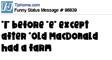 - # 173698 "I" before "e" except after "Old MacDonald had a farm"