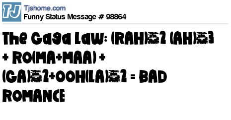 - # 31621 The equation for Lady Gaga's Bad Romance :(RAH)^2 (AH)^3 + RO(MA +(MA)^2) + (GA)^2 + OOH(LA)^2