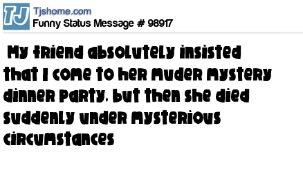 X says My friend absolutely insisted that I come to her muder mystery dinner party, but then she died suddenly under mysterious circumstances