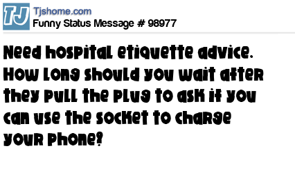 - # 147427 If I'm ever in the hospital on Life Support, don't just pull the plug. Pull it and plug it back in. Basically, see if you can reboot me.