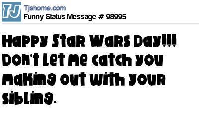 X says Happy Star Wars Day!!! Don't let me catch you making out with your sibling.