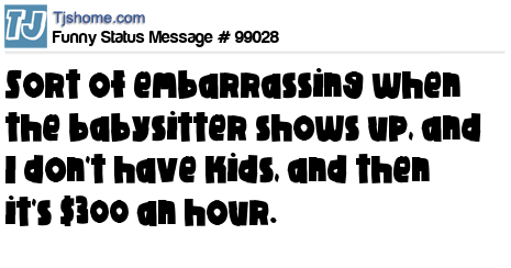X Sort of embarrassing when the babysitter shows up, and I don't have kids, and then it's $300 an hour.