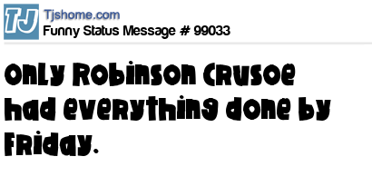 X Only Robinson Crusoe had everything done by Friday.