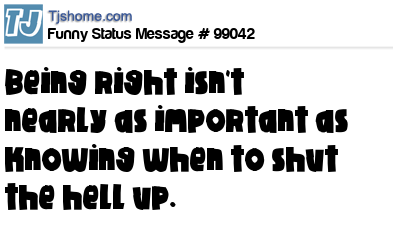 X Being right isn't nearly as important as knowing when to shut the hell up.