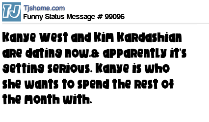 - # 96968 I guess Kanye West and Kim Kardashian are dating now, and apparently it's getting serious. Friends say Kanye is the guy Kim wants to spend the rest of her month with