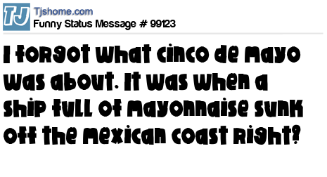 - # 20893 Few people know this but Cinco de Mayo is actually about a ship full of mayonnaise that sank off the coast of Mexico.