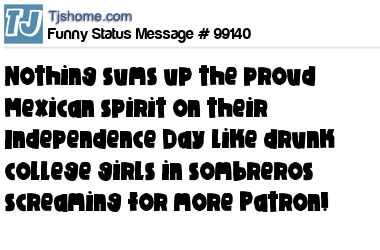 - # 99137 Nothing sums up the proud Mexican spirit like drunk blonde girls, in sombreros, chanting "Patron."