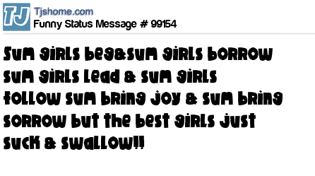 - # 165544 some girls beg, and some girls borrow. some bring joy some bring sorrow. but the best girls suck and swallow