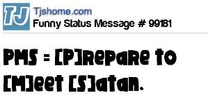 - # 95318 I just told my child that PMS stands for 'Prepare to Meet Satan.'
