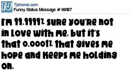 X says I'm 99.9999% sure you're not in love with me, but it's that 0.0001% that gives me hope and keeps me holding on.