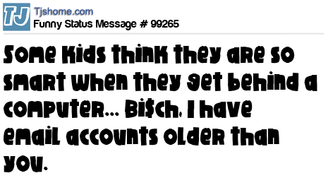 X is Some kids think they are so smart when they get behind a computer... Bi$ch, I have email accounts older than you.