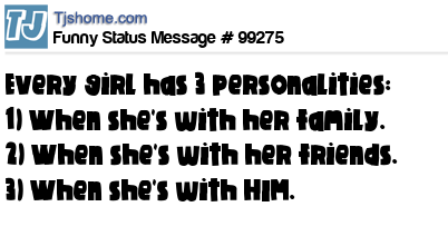X is Every girl has 3 personalities: 1) When she's with her family. 2) When she's with her friends. 3) When she's with HIM.