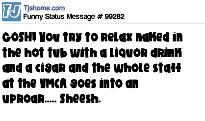 X GOSH! You try to relax naked in the hot tub with a liquor drink and a cigar and the whole staff at the YMCA goes into an uproar..... Sheesh.