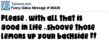X Please , with all that is good in life ..shoove those lemons up your backside ??