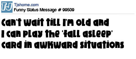 X says Can't wait till I'm old and I can play the 'fall asleep' card in awkward situations