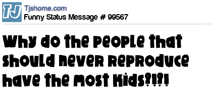 - # 88665 How come people that should never be allowed to reproduce have the most kids?