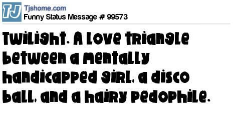 - # 25717 OMG I just wasted my time watching the twilight series :love triangle between a depressed girl a 110 yr old vampire and a werewolf !