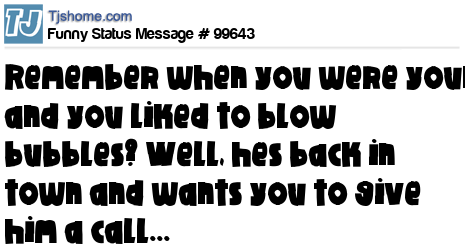 X  Remember when you were young and you liked to blow bubbles? Well, hes back in town and wants you to give him a call...