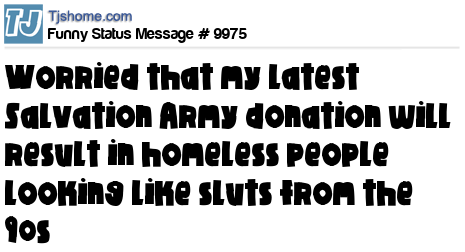 X is worried that my latest Salvation Army donation will result in homeless people looking like sluts from the 90s
