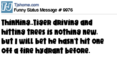 X is thinking..Tiger driving and hitting trees is nothing new, but I will bet he hasn't hit one off a fire hydrant before.