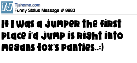X If I was a jumper the first place i'd jump is right into megans fox's panties..:)