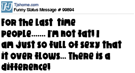 X For the last time people....... I'm not fat! I am just so full of sexy that it over flows... There is a difference!
