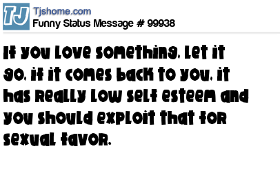 - # 97738 If you love something, let it go, if it comes back to you, it has really low self esteem and you should exploit that for s@xual favors