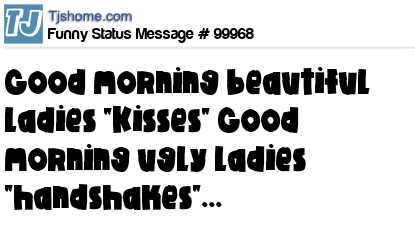 - # 97686 Good morning beautiful ladies "Kisses" Good morning ugly ladies "hand shakes"