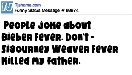 - # 90278 People joke about Bieber Fever. Don't. Sigourney Weaver Fever killed my father.