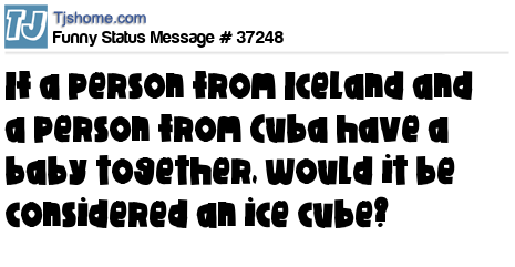 - # 133936 If a girl from Iceland. .an a guy from cuba have a baby ...is it an ice-cube.... lol.. ;)