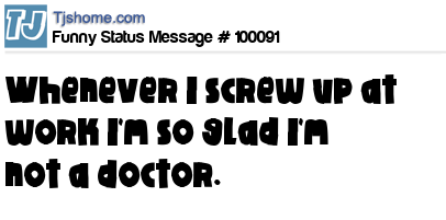 X says Whenever I screw up at work I'm so glad I'm not a doctor.