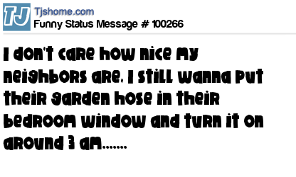 X I don't care how nice my neighbors are, I still wanna put their garden hose in their bedroom window and turn it on around 3 am.......