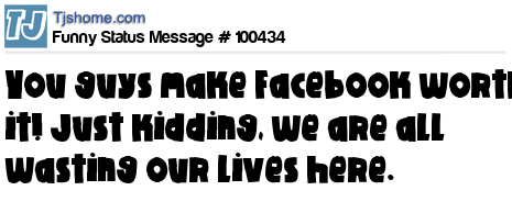 X says You guys make Facebook worth it! Just kidding, we are all wasting our lives here.