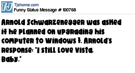 - # 8822 Arnold Schwarzenegger was asked if he wanted to upgrade to Windows 7. He replied "I still love Vista, baby".