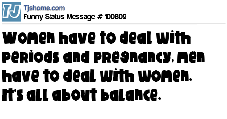 - # 48826 Women have to deal with periods and pregnancy. Men have to deal with Women. It's all about balance.