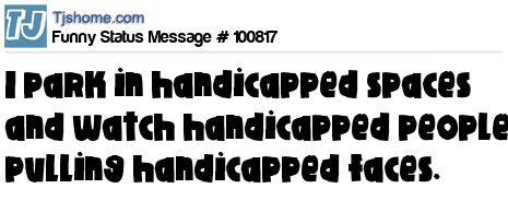 X says I park in handicapped spaces and watch handicapped people pulling handicapped faces.