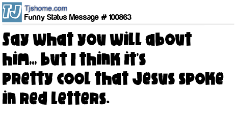 X Say what you will about him,,, but I think it's pretty cool that Jesus spoke in red letters.