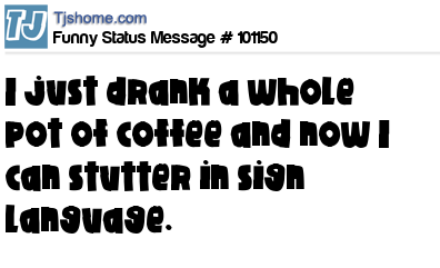 X says I just drank a whole pot of coffee and now I can stutter in sign language.