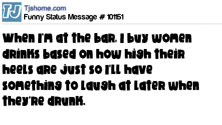 X says When I'm at the bar, I buy women drinks based on how high their heels are just so I'll have something to laugh at later when they're drunk.
